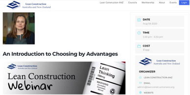 Paz Arroyo will present on Choosing by Advantages at the Lean Construction Ireland (LCi) Webinar series.